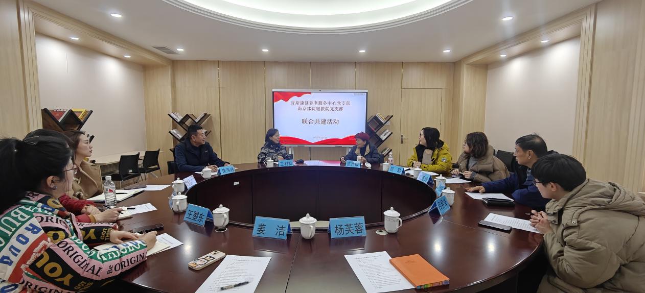 3月6日下午,南京体院机关党委继教院党支部与南京普斯康健养老服务中心党支部在学校图书馆303会议室举行交流座谈会,以“党建引领聚合力,体卫融合促发展”为主题共商联合共建。东南大学国际老龄化研究中心主任、南京普斯康健养老服务中心理事长张肖敏,校机关党委书记王丽雅,继教院党支部书记、副院长朱海峰及双方党员干部代表参加活动。继教院办公室主任顾悦主持交流活动。