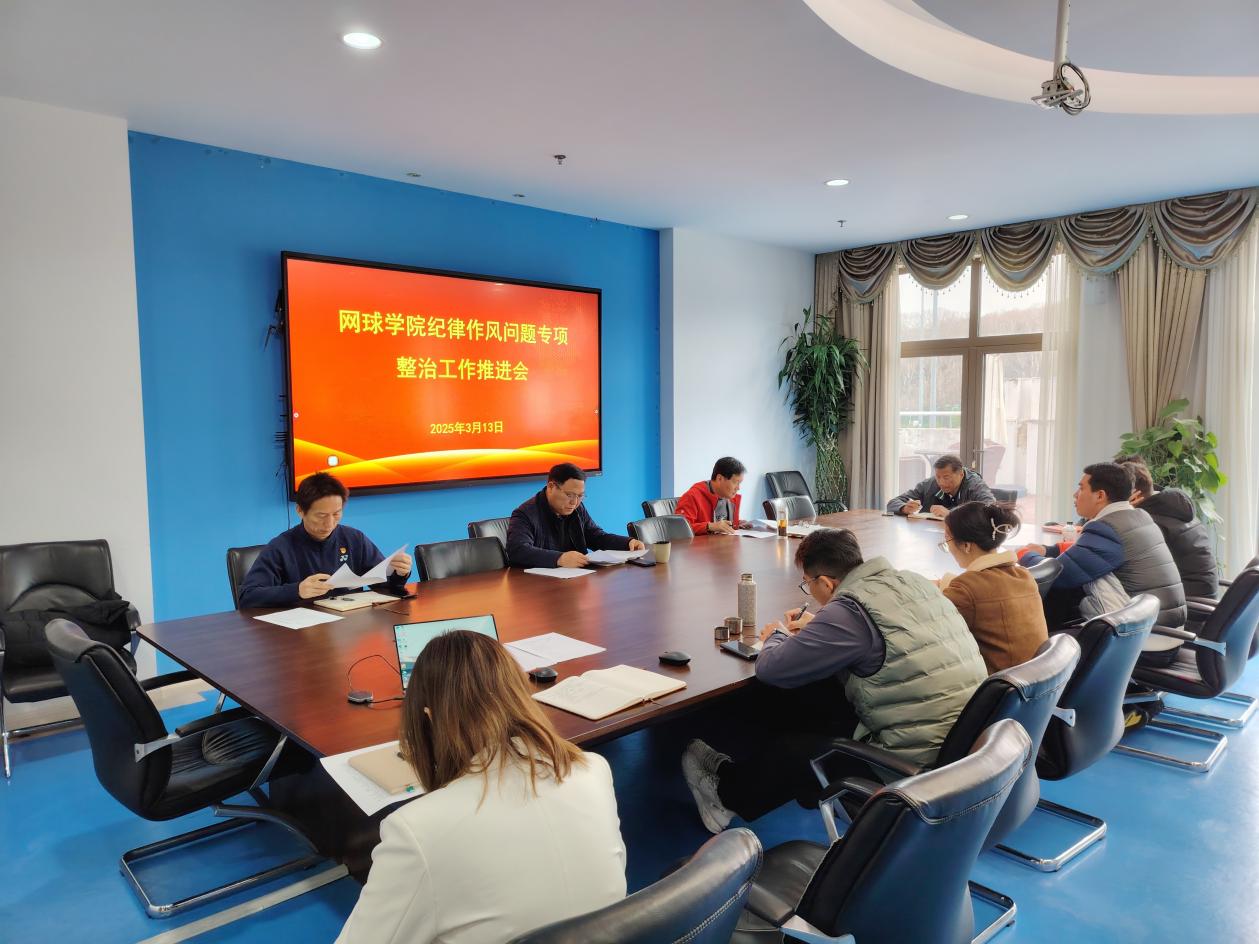 3月13日,网球学院召开纪律作风问题专项整治工作推进会。网球学院直属党支部书记唐存楼、院长陆玉林、副院长兼网球队领队姜惟、网球学院全体管理干部、教练员及科医保障人员参加会议。会议由网球学院直属党支部书记唐存楼主持。