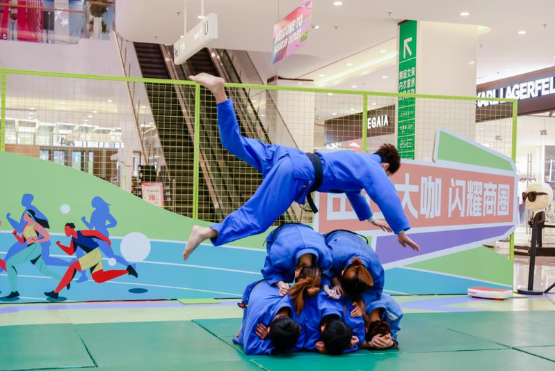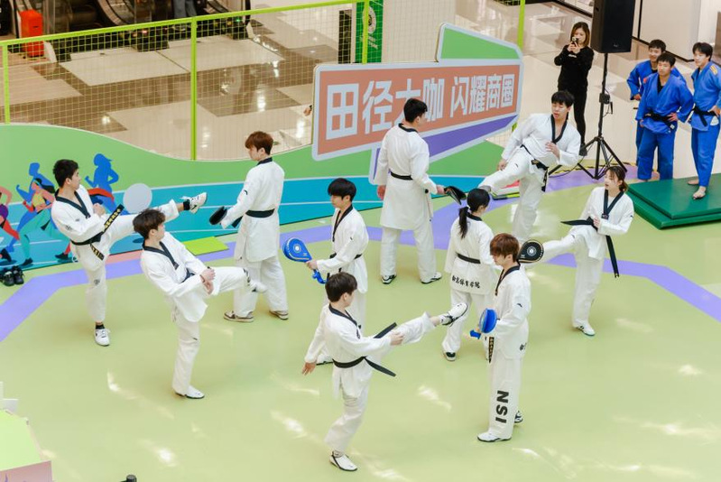 志愿者展示跆拳道和柔道表演