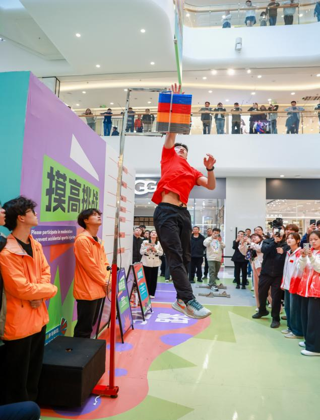 刘俊茜与3名来自我院田径专项的学生进行指压板跨栏、骑遇魔方与奋力摸高趣味项目比拼,他轻盈的步伐与敏捷的反应,让大家赞叹不已。这些项目吸引了大量市民和游客参与,活动现场气氛热烈。志愿者们不仅负责项目的组织和引导,还向观众们讲解运动技巧,普及田径知识,激发了大众对田径运动的兴趣。来自世界各地的运动员在比赛之余走出赛场,感受南京的城市魅力,跆拳道与柔道专项的学生们为大家带来了体育运动表演,他们以精湛的技艺和饱满的热情,向观众展示了专项技能,赢得了阵阵掌声。翻译组的志愿者主要负责为前来参与活动的外国友人提供翻译服务。他们以流利的外语和专业的沟通能力,协助外国友人参与趣味活动,并介绍南京的文化和赛事背景,得到了外国友人的高度评价。