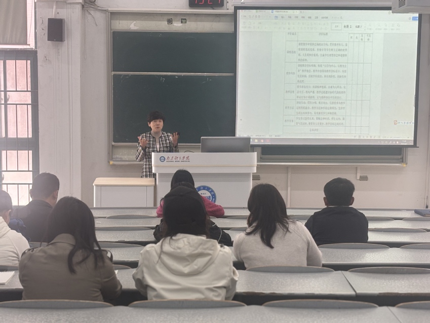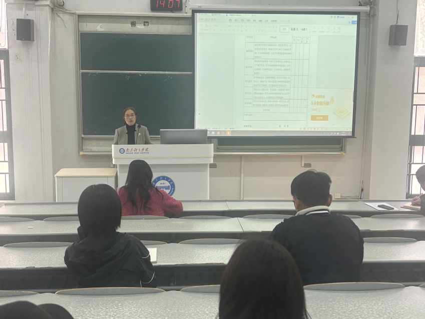 张蕴琨结合多年教学评估经验,依据《普通高等学校本科教育教学审核评估指标体系》的课堂教学评价标准,对学院现阶段课堂教学质量进行了深入剖析。她充分肯定了学院教师在课程建设方面取得的成效,同时对标对表指出了五个需要重点提升的方向:一是课程思政元素的有机融入还需加强,要避免“贴标签”式的生硬结合;二是教学设计理念需要更新,要突出以学生为中心的教学理念;三是部分教师对教学内容的熟悉程度有待提高;四是教学方法要注重层次性,针对不同基础学生实施差异化教学;五是教风学风建设要形成良性互动,实现教学相长。
