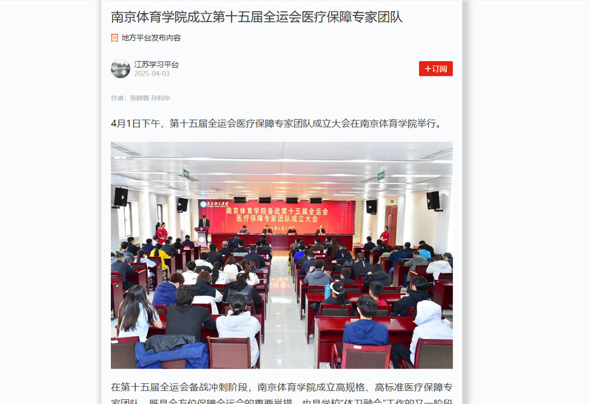 【学习强国】36365最新线路检测中心成立第十五届全运会医疗保障专家团队