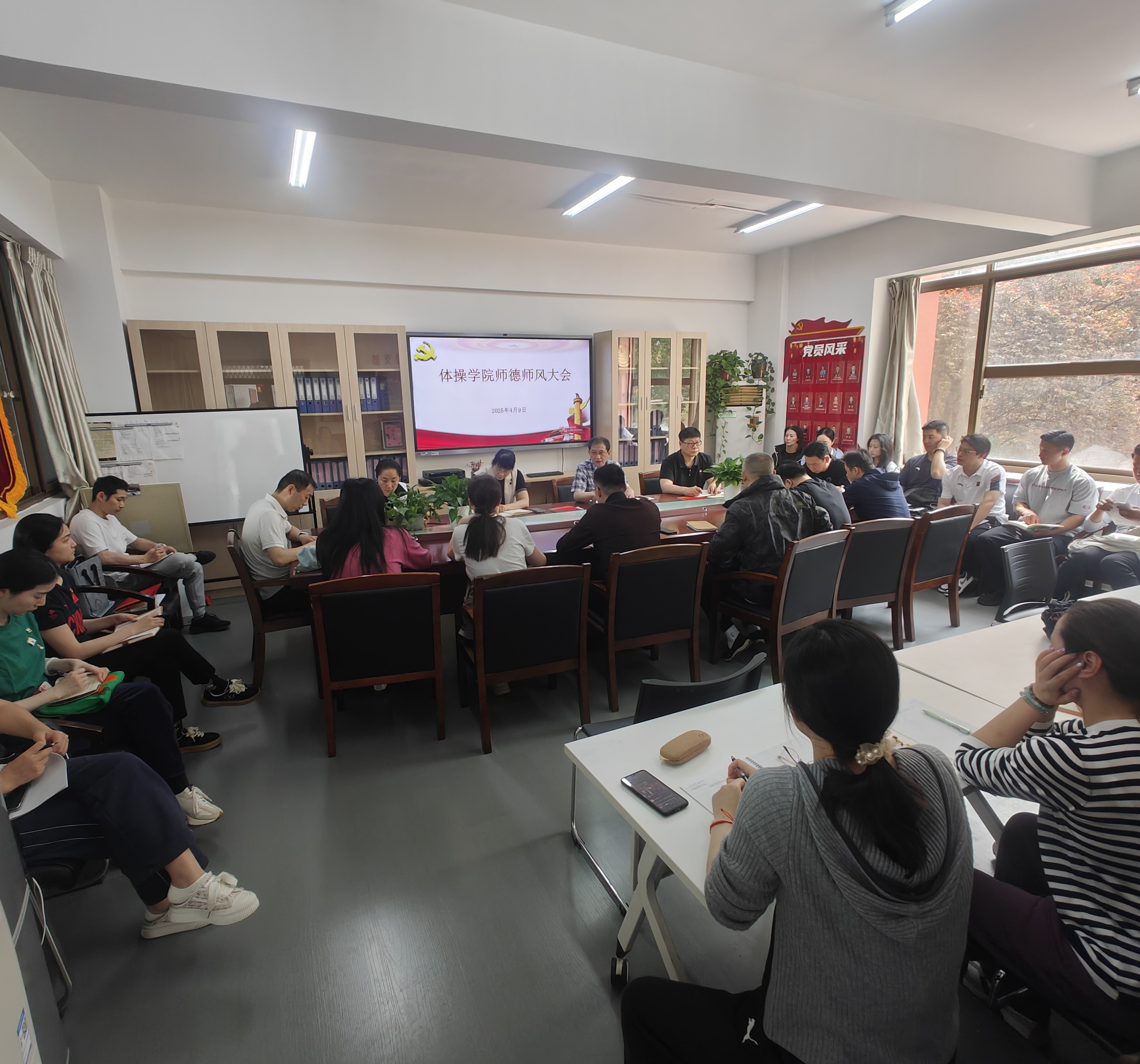 4月9日上午,体操学院在体操蹦床馆会议室召开全院师德师风大会。体操学院党总支书记谢长虹主持会议。