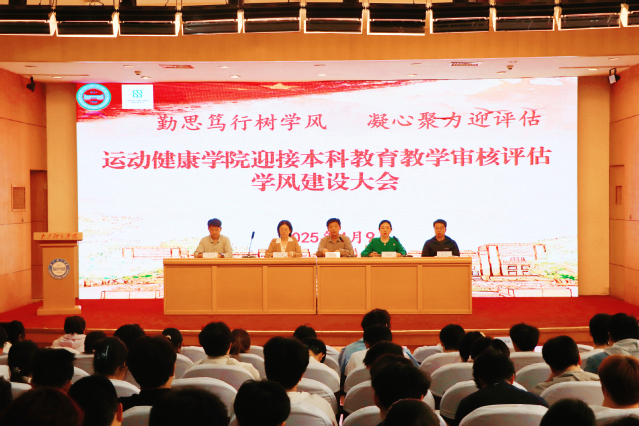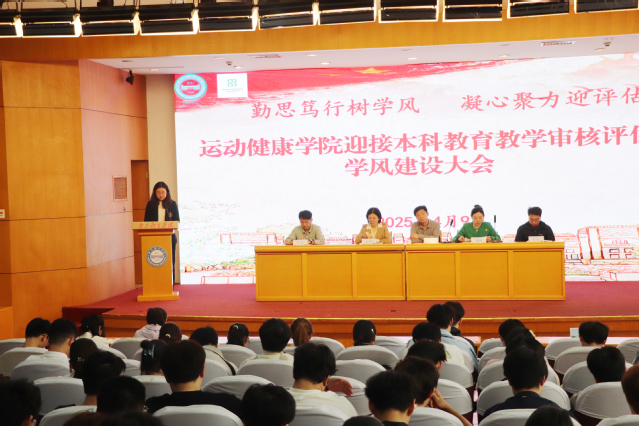 为进一步落实本科教育教学审核评估迎评工作的安排,提升学生对迎评促建工作的深入认识,进一步加强学院学风建设,密切“教·学”协同育人,4月9日中午,运动健康学院在图书馆报告厅召开迎接本科教育教学审核评估学风建设大会。学院领导班子成员、各系主任、全体辅导员、班主任及在校全体学生共同参会。会议由学院党总支副书记阚妮妮主持。