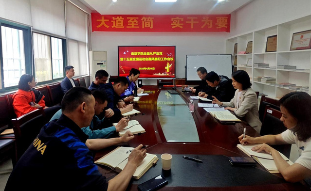 4月16日上午,击剑学院在击剑馆一楼会议室召开全面从严治党暨第十五届全国运动会赛风赛纪工作会议。全体党员干部、教练员参加了会议。副院长兼击剑队领队孙海平主持会议。