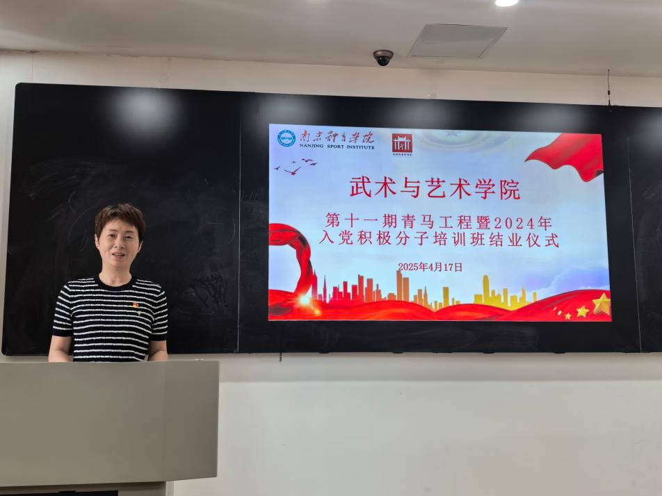 为全面贯彻落实习近平总书记关于青年工作的重要思想,持续推进学校青年马克思主义者培养工程建设,发挥学院分团委为党育人政治功能,4月17日下午,武术与艺术学院在图书馆第二报告厅举办第十一期“青年马克思主义者培养工程”暨入党积极分子培训班结业仪式。学院党总支书记叶瑛、副书记杜家俊,辅导员马高曼、陆丹以及本期培训班全体学员参加。结业仪式由马高曼主持。