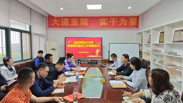 4月21日上午,击剑学院在击剑馆一楼会议室召开2025年师德师风建设工作专题会议,全体教职工参加会议。本次会议由学院直属党支部书记朱小兰主持。