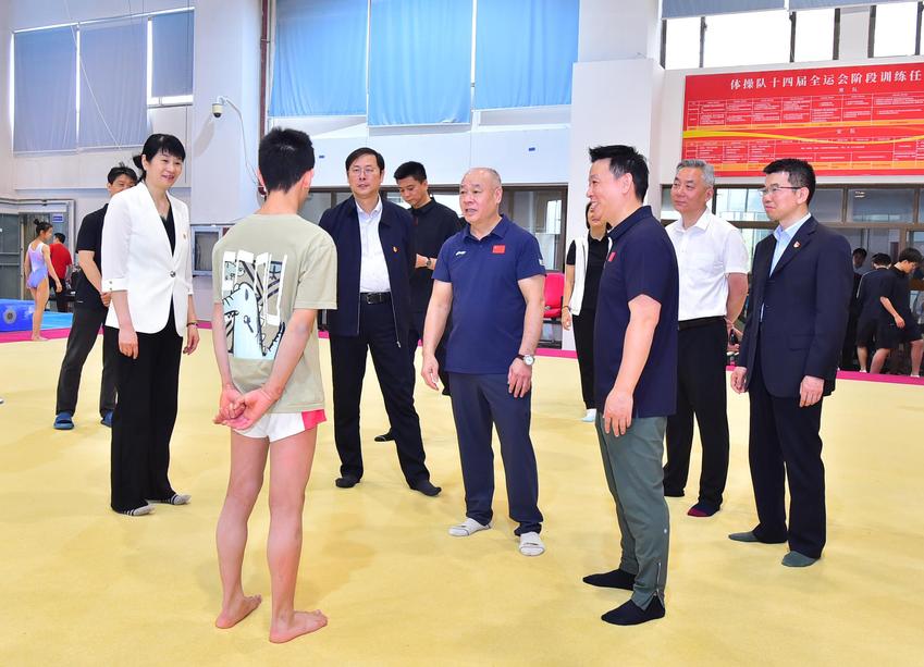 李宁一行在体操队考察,并与运动员亲切交流