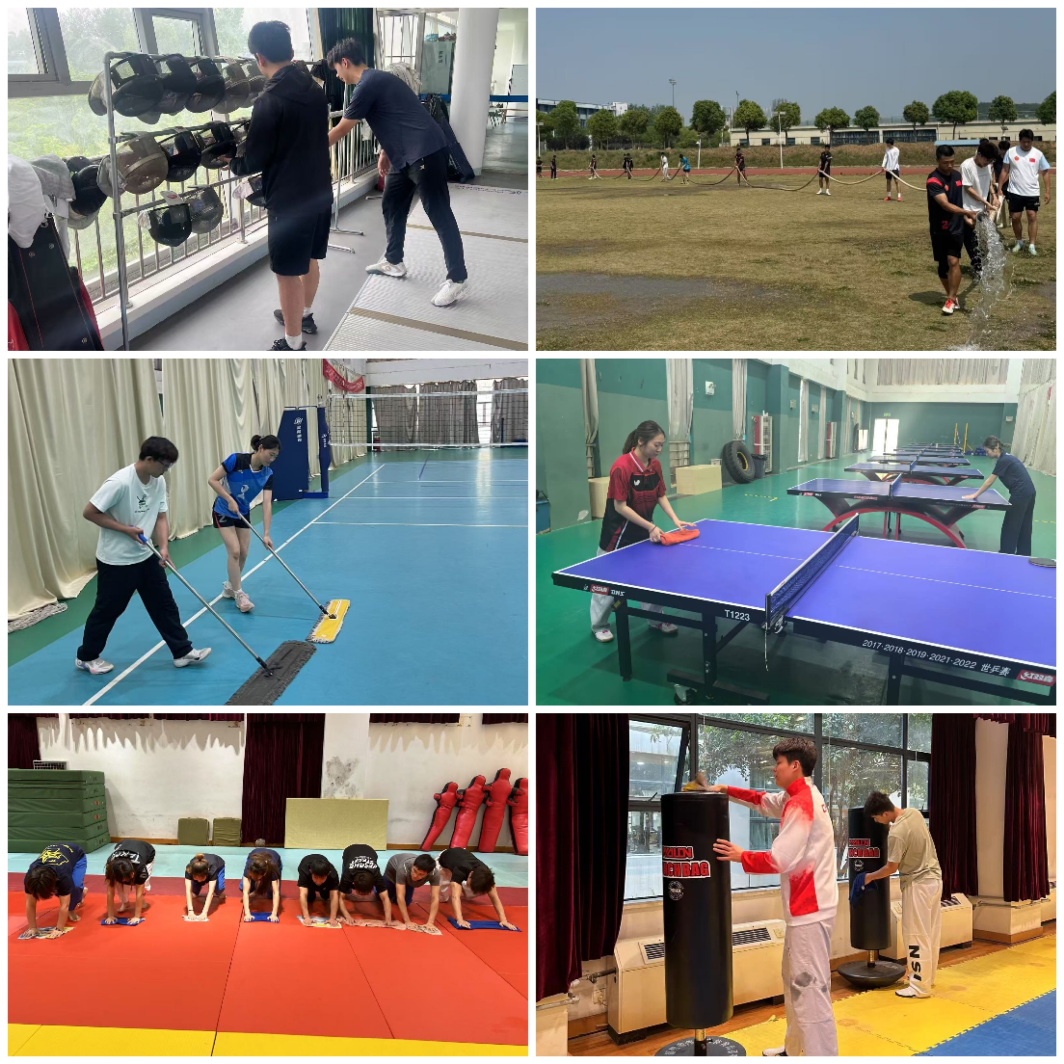 为深入贯彻落实《中共中央 国务院关于全面加强新时代大中小学劳动教育的意见》精神,积极响应学校“五月劳动教育实践活动”号召,运动训练学院于4月28日—5月6日,紧扣“以劳强体,以劳育人”主题,组织学生结合专项特点,以场馆物品整理、卫生打扫,宿舍整理及安全隐患排查等形式开展劳动教育实践活动,充分发挥劳动教育树德、增智、强体、育美的综合育人作用,让学生在实践中增强劳动意识,提升劳动技能。
