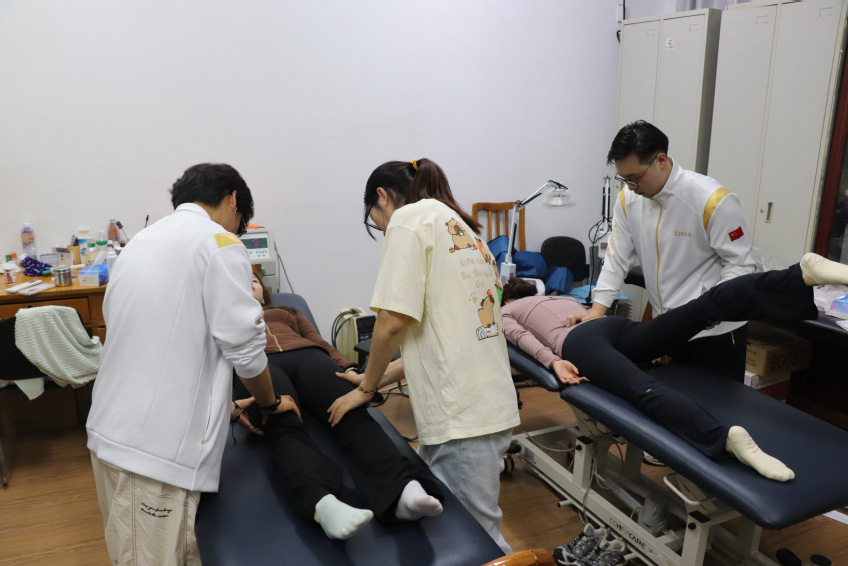 研讨结束后,运动健康学院的入党积极分子们充分发挥专业特长,运用所学的运动康复知识和技能,为运动员们进行肌肉放松、拉伸等专业护理,帮助运动员们缓解训练后的疲劳,促进身体恢复。在服务过程中,入党积极分子们认真负责、耐心细致,展现出扎实的专业素养和良好的精神风貌,得到了游泳学院运动员们的一致好评。