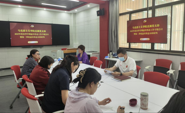 5月13日下午,马克思主义学院直属党支部在思政课教学实践中心召开2025年度春季学期意识形态工作暨第二季度意识形态分析研判专题会议。会议由学院直属党支部书记张亚军主持。学院全体教职员工参加会议。