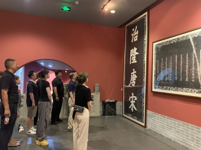第二站,全体党员前往南京十朝历史文化陈列馆,聚焦六朝至民国时期的廉政典故,在优秀传统文化浸润中进一步强化廉洁意识,筑牢政治规矩。在参观中,大家通过《竹林七贤》书画、清代《官箴碑》拓片等展项,探讨了“风骨”“气节”在艺术创作与教育实践中的价值。