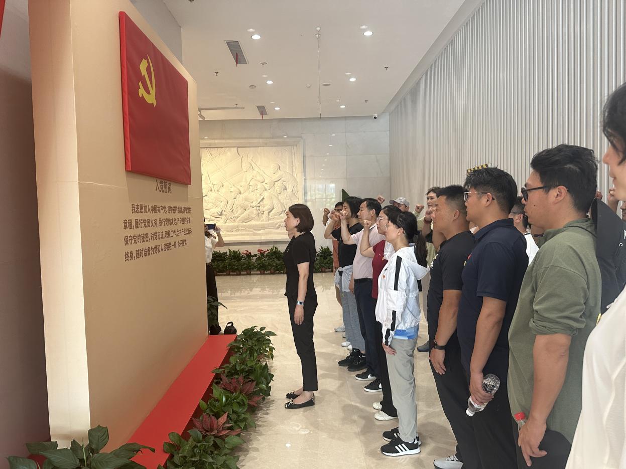 党总支书记葛见珠带领全体党员庄严宣誓,重温入党誓词。“我志愿加入中国共产党……”铿锵誓言与纪念馆“千帆竞渡”浮雕交相辉映,激荡起赓续奋斗的豪情。