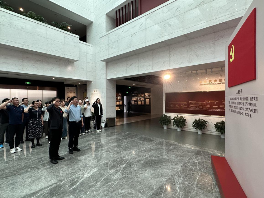 学院党员干部在馆内集体重温了入党誓词。党总支书记卢奎强调,梅园新村的历史不仅是一部争取和平的谈判史,更是一部中国共产党团结各方力量、坚守纪律规矩的生动教材。他指出学院正处于爬坡过坎干事创业的关键时期,全体党员干部要学习周总理善于团结,包括团结不同意见的同志一起工作的领导艺术,以“求同存异”的智慧维护学院团结奋进的良好局面。