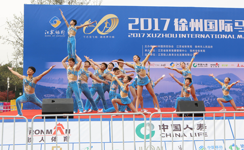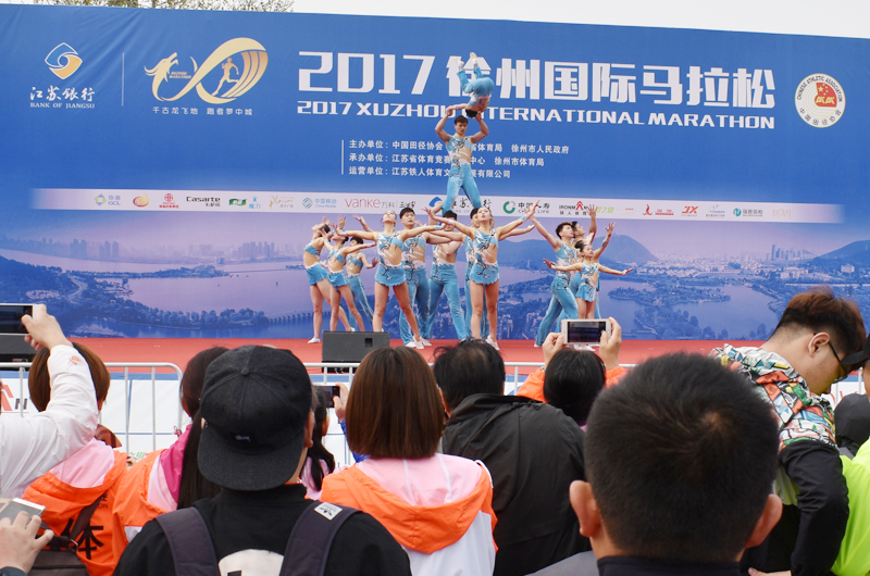 4月9日清晨,我院啦啦操队的姑娘们、武术专项的小伙子们和技巧队的运动员们,迎着和煦的春风,参加了徐州国际马拉松比赛的暖场表演。本次赛事参赛选手规模两万人,参与范围广泛,受到各界人士的关注。
