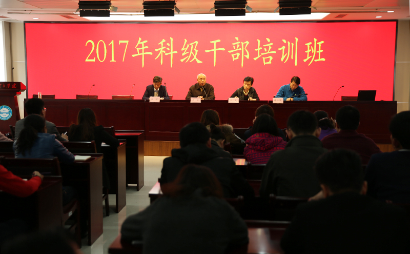 我院2017年科级干部培训班4月7日在我院行政办公楼101室举行。院党委副书记、副院长汤岩,院纪委副书记顾道,院党委组织部部长殷光,院党委宣传部、统战部部长许立俊同志出席了本次培训班。