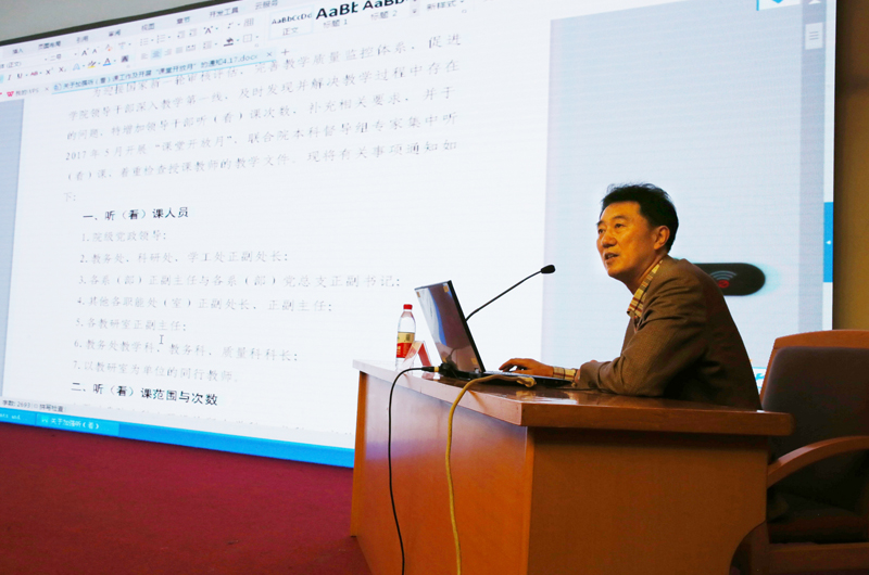 大会第一阶段,副院长史国生作《本科教学工作审核评估的内涵与实施》培训报告,从评估框架、要素释义、实施过程三个方面,对本科教学工作审核评估范围中的审核项目、要素和要点等内容进行了深入分析与解释。教务处处长严海平解读我院本科教学审核评估评建工作细化方案,布置开展“课堂开放月”等专项工作。