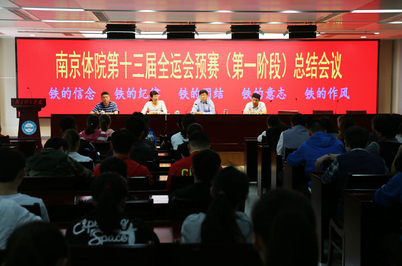 5月6日下午,我院召开第十三届全运会预赛(第一阶段)总结会议,学习贯彻省体育局会议精神,部署我院预决赛相关工作。院长杨国庆,副院长蒋宏伟、肖爱华出席了会议。各竞技体育系队教练员、管理干部、医务科研人员、即将出征预赛的部分运动员和训练处全体工作人员参加了会议。会议由训练处处长张健主持。