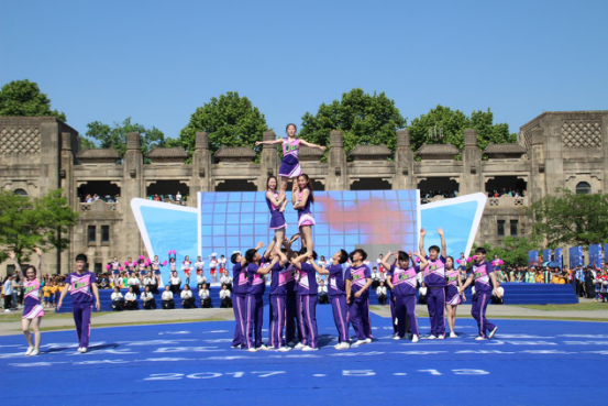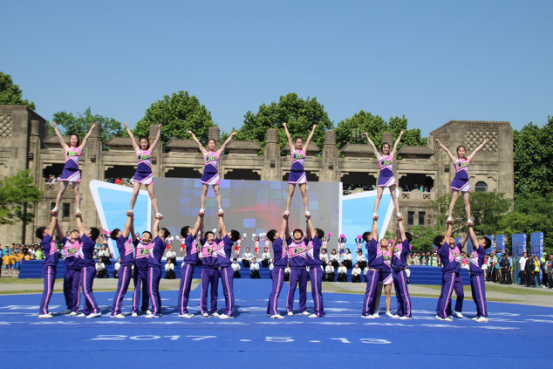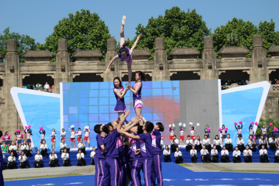 5月13日,首届玄武区春季运动会在我院中央体育场拉开了帷幕,院长杨国庆出席了运动会开幕式。我院技巧啦啦队在开幕式上用矫健的身手、敏捷熟练的动作、魅力四射的表现力,赢得了现场观众一阵阵惊呼。大家不由自主为他们的高超技艺竖起了大拇指,队员们用他们的精彩表演点燃了现场热烈的气氛。