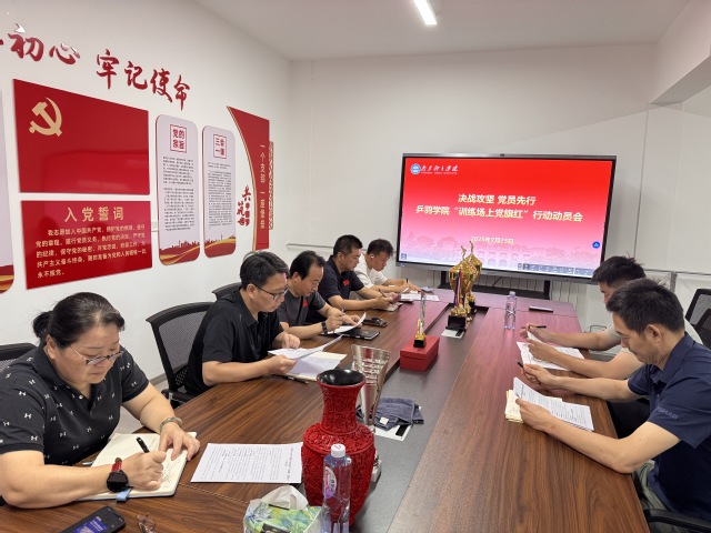 7月23日上午,乒羽学院召开了“决战攻坚・党员先行”动员会,正式拉开2025年度夏训至决赛前“训练场上党旗红”行动序幕。本次动员会紧扣十五运会备战攻坚目标,结合省体育局夏训工作要求,旨在以党建引领夏训备战提质增效,为实现“训出硬实力、赛出好成绩”凝聚全院力量。学院全体管理干部参会。