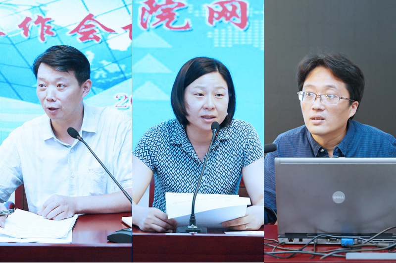 左:许立俊宣读校园网和学院微信公众号相关管理规定;中:葛见珠主持会议;右:魏宁作网络安全工作