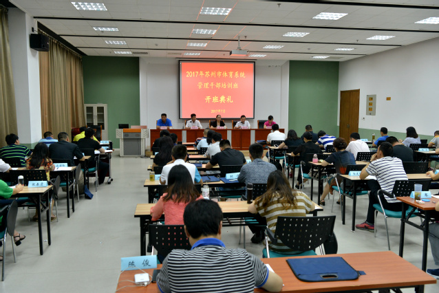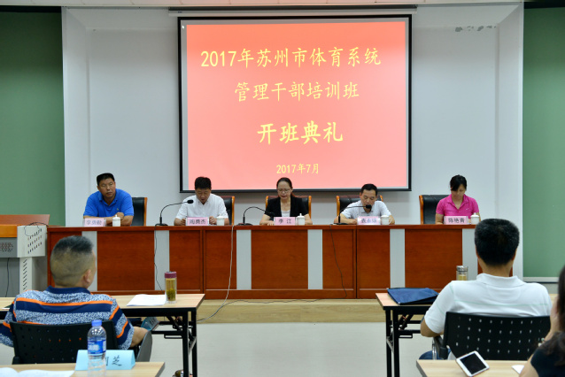 7月3日,苏州市体育系统管理干部培训班(第二批)在我院中国网球学院开班。36365最新线路检测中心副院长李江教授,苏州市体育局副局长袁永球、陈艳青及36365最新线路检测中心继续教育部主任李勇勤教授出席了开班仪式。开班仪式由陶勇杰副局长主持。苏州市局机关全体人员、直属单位科级以上干部,以及所辖市县区体育部门的管理干部参加培训。