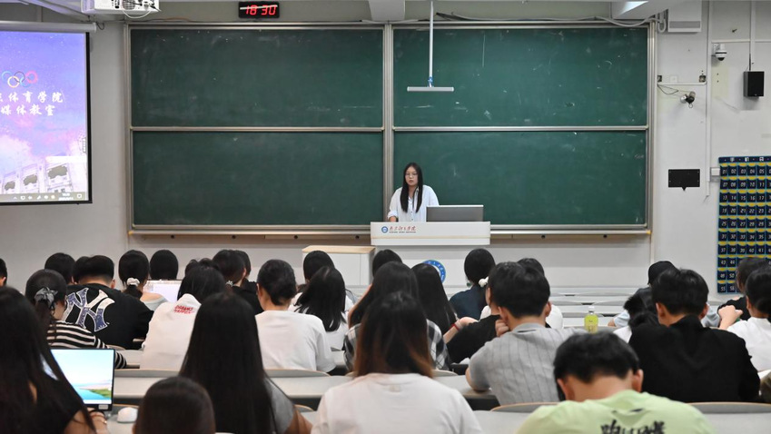 讲座中,孙庆以“融媒体时代体育新闻的实践与思考”为主题,结合自身数十年体育记者生涯与“苏超联赛”深度报道经验,为同学们带来兼具实操性与思想性的分享。他系统梳理了融媒体环境下体育新闻报道的转型方向,从选题策划、现场采访到内容呈现,详细拆解了高质量体育新闻的生产流程;同时,他结合个人从基层记者到媒体管理岗位的成长历程,生动讲述了“苏超联赛”报道中挖掘赛事背后故事、捕捉赛场人文细节的经历。针对AI技术对新闻行业的冲击,孙庆着重强调:“体育新闻的核心价值在于‘人’与‘现场’,AI可替代信息整合,但无法复刻现场的温度与专业的洞察,体育记者需聚焦‘现场感传递’与‘专业观点输出’两大核心,打造不可替代的职业竞争力。” 他还勉励同学们,要以对体育新闻的热爱为底色,在即将开启的实习中保持创作热情与探索精神,在实践中积累独家经验。