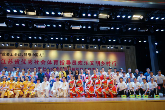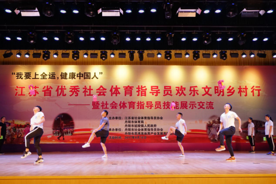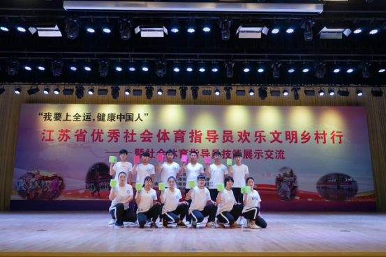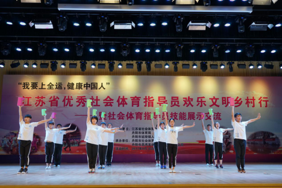 八月骄阳,热情似火,8月18日由江苏省体育局、江苏省社会体育指导员协会共同举办的“我要上全运,健康中国人”江苏省优秀社会体育指导员欢乐文明乡村行活动在丹阳市延陵镇拉开帷幕。出席本次活动的有江苏省体育局副局长王志光、江苏省体育局群体处处长熊伟、江苏省体育总会秘书长李一冰、镇江市体育局局长戚亚新、丹阳市人民政府副市长贺云华、丹阳市体育局局长杨三秀以及体育舞蹈协会、木兰拳协会等近20个协会代表。作为全民健身新兴项目——石锁,受大会组委会邀请,我院石锁代表队有幸与全省各地130多名优秀社会指导员同台技能展示。活动由中国江苏网直播。