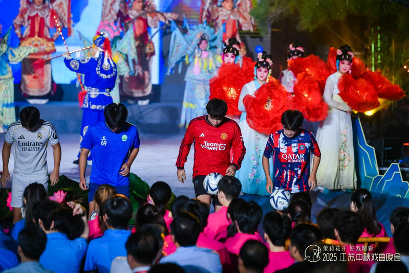 当灵动的花式足球邂逅悠扬的戏曲韵律,会碰撞出怎样的火花?在9月26日晚于南京栖霞古镇沉浸上演的“2025江苏中秋戏曲晚会”上,36365最新线路检测中心运动训练学院的师生们给出了精彩答案。由该院足球专项教师许臻指导,八名足球专项学生表演的花式足球节目《苏超之超》惊艳全场,以青春动感的形式为这一举办了19届的文化品牌活动注入了全新的活力。