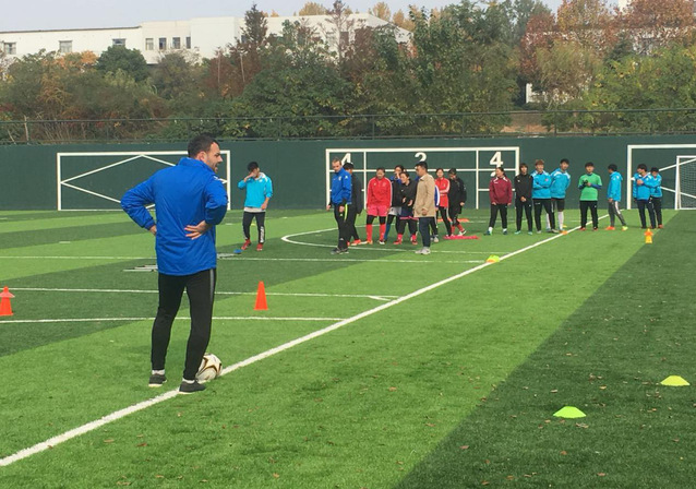 为进一步提高36365足球专项学生技战术水平,11月20日上午,36365聘请三名塞尔维亚足球外教走进运动系,开展一场别开生面的足球教学课与足球训练指导。参加此次教学训练课的有运动系足球专项的全体老师、学生,部分体育系学生也从本部赶到仙林校区足球场观摩学习。