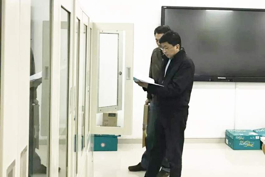 当天下午,杨国庆校长在评建办公室检查支撑材料最后的整理情况,仔细翻阅了“特色材料”模块文件盒,充分肯定了支撑材料组前期工作,亲切慰问相关工作人员,并对专家案头材料、相关证件制作等准备工作进行了审查。教务处处长严海平陪同。