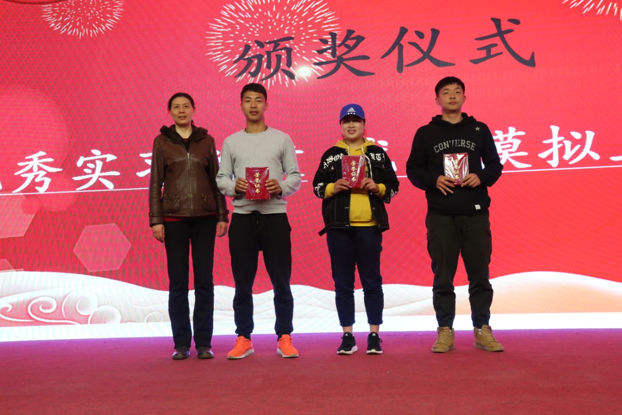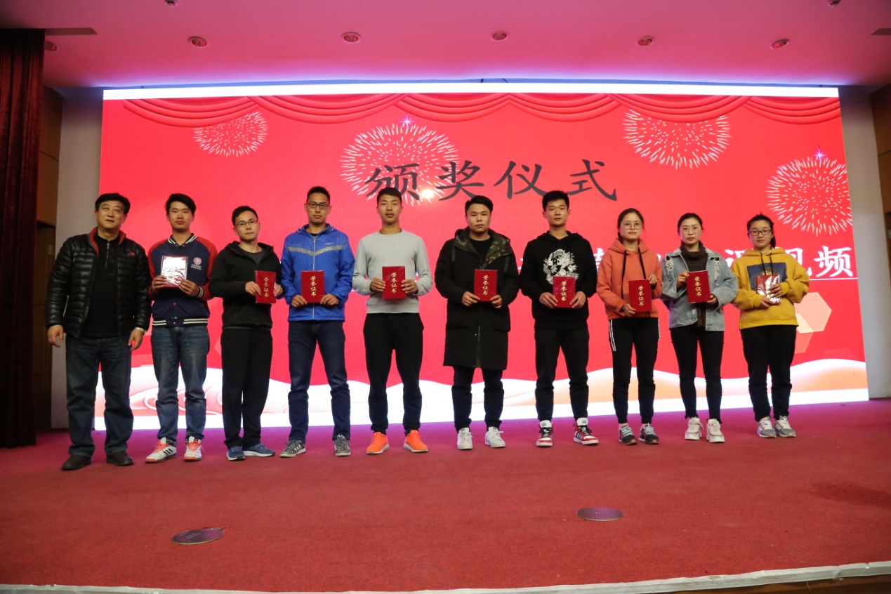 大会表彰了在实习作品评选活动中获奖的同学,陈荣梅、王进和教研室主任肖秋平为获奖的同学颁发证书并合影留念。其中姚逢涛、徐静和陈倩楠同学取得了教案制作一等奖的好成绩,薛明、王思琪和吴启明荣获模拟上课比赛第一名。会议还表彰了在第六届江苏省师范生教学基本功大赛中获得中学体育学科二、三等奖的宋词、朱闯同学,以及在“互联网+”大学生创新创业大赛第三届建行杯国赛选拔赛暨第六届“花桥国际商务城杯”省赛中荣获三等奖的《江苏省敏驰体育科技有限公司》团队。