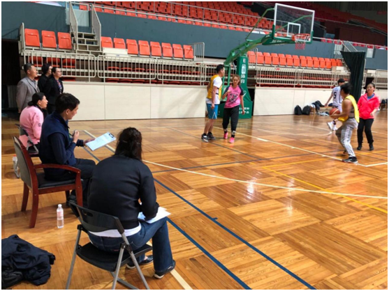 李江、陈海波巡视篮球测试现场
