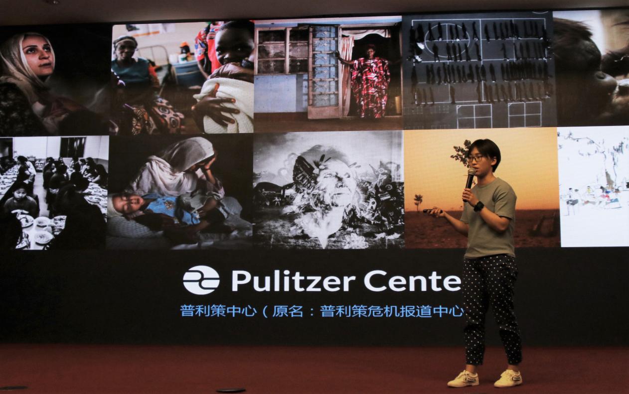 接着丁进介绍了她们团队在这方面做出的努力,他们为国内外的摄影师提供了多种保障。除了摄影师,普利策团队中心还与各大机构、刊物合作,提供长期和多次的支持。这些个人或团体在普利策团队中心的支持下都圆满完成了自己想完成的项目。丁进也给同学们展示了这些项目合作对象的成果。现在在普利策中心的支持和保障之下,一些珍贵的资料才得以留存,这些作品也被业界广泛认同。