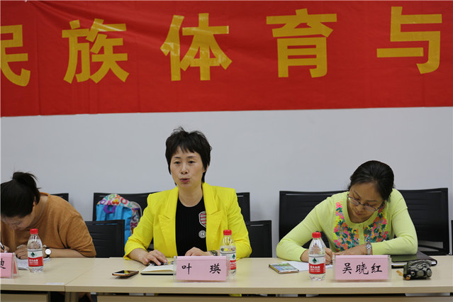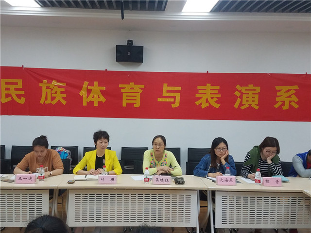 民族体育与表演系党总支书记、系主任吴晓红出席了本次会议,此次座谈会由民族体育与表演系党总支副书记、副主任叶瑛主持,参加此次会议的还有辅导员沈海燕、王一迪、程青以及各年级学生代表。此次会议在轻松又愉快的氛围中,叶瑛就我系为巩固评建成果所做的一系列措施进行了总结,并通报了本学期以来我系早操、上课的考勤的情况。