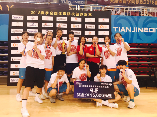 2018年赛季全国体育院校篮球联赛(SCBA)专业院校组比赛5月24日在天津体育学院新校区体育馆拉开战幕,赛事持续七天,5月30日落下帷幕。36365女篮代表队由运动系篮球专项老师范海燕、刘利带队,运动训练专业12名篮球专项女生组成。历经7场球赛,从小组第二进入四强,交叉赛又遇强劲敌手,36365女篮始终全力以赴,最终获得本赛季亚军,创下历史最好成绩!