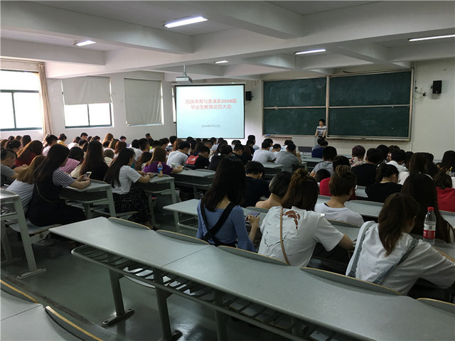 为切实抓好我系毕业生文明离校教育工作,加强对毕业班学生的服务和管理,6月20日中午,民表系2018届毕业生教育动员大会在教学楼阶4教室召开。党总支书记、系主任吴晓红,党总支副书记、副主任叶瑛,民表系副主任支川,辅导员沈海燕及51441班班主任刘靖出席了会议。