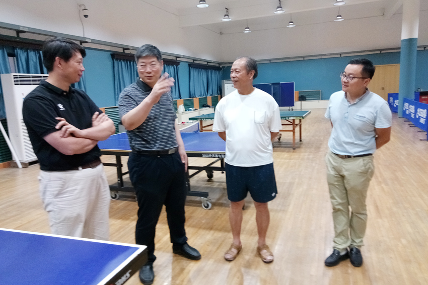 许立俊一行与乒乓球队领队杨干、老领队周来交流工作