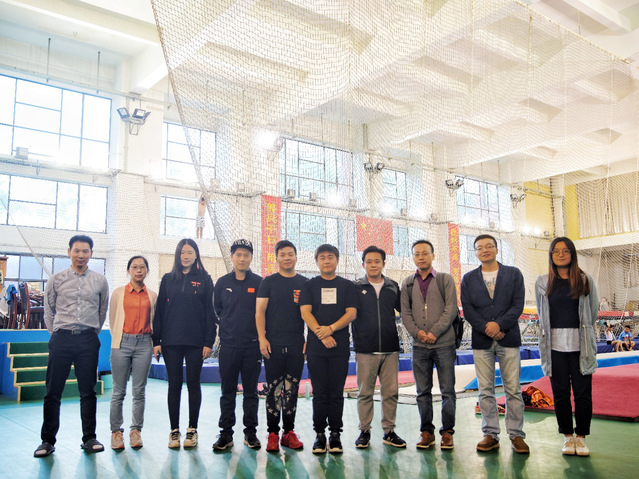 随后,同学们出发前去体操蹦床馆。进入馆内,先映入眼帘的是不断在蹦床上翻飞的小运动员们。他们落下又跳起,在空中做着训练的动作。一个动作反复做,教练在旁边不停指出问题。接下来引起我们注意的,是在垫板上一个接一个练习空翻的小运动员们:助跑、起跳、空翻,一套动作下来行云流水,使在场采风的同学们都不禁发出赞叹。而赞叹的同时,我们也看到了小运动员们为此付出的汗水、努力和坚持。