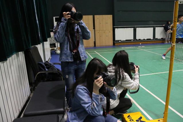 下午3:00,在不影响运动员训练的情况下,同学们首先深入的是校羽毛球队。一进入羽毛球馆,同学们就感受到了一股热火朝天的拼搏劲儿。正在接受训练的是很多与同学们年龄相仿甚至小很多的运动员,他们的每一次挥拍、每一次击打都充满了技巧感与力量感,这是他们每天坚持、不停重复训练的成果。在羽毛球馆不远处的体能与康复实验室中,有一部分运动员正运用器材进行着体能训练,他们锻炼的不仅仅是身体素质和力量,更是自身的耐力和意志。
