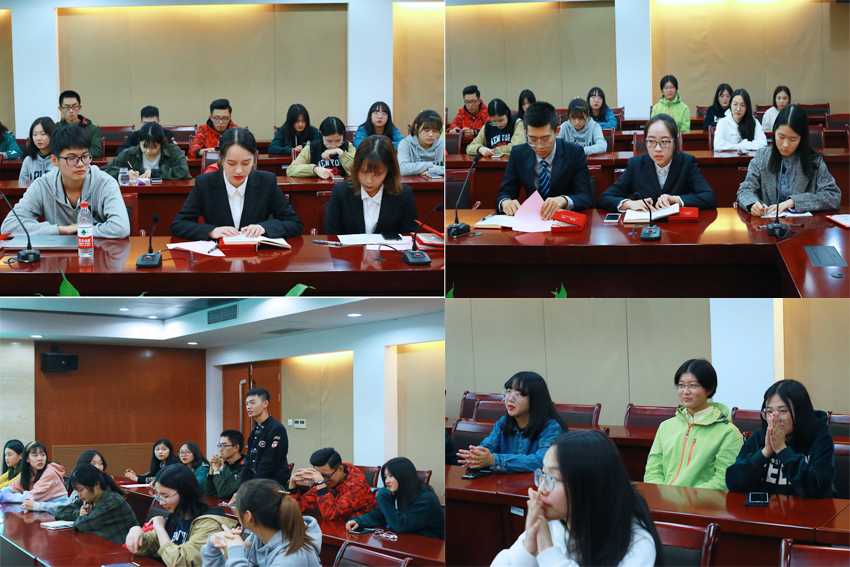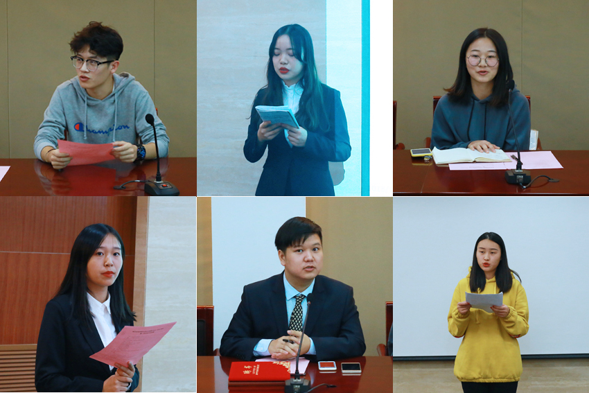 学生干部朱治丞、谢安楠、沈思怡、梁琛琛、陆金宇及新成员代表张楠楠发言