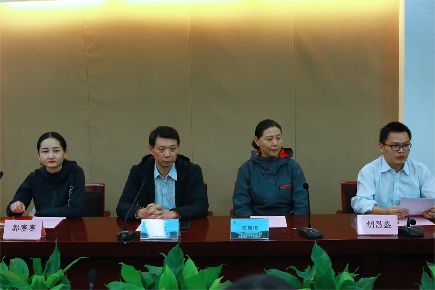 党委宣传部部长、统战部部长许立俊(左二),体育系党总支副书记、副主任陈荣梅(右二)等出席会议