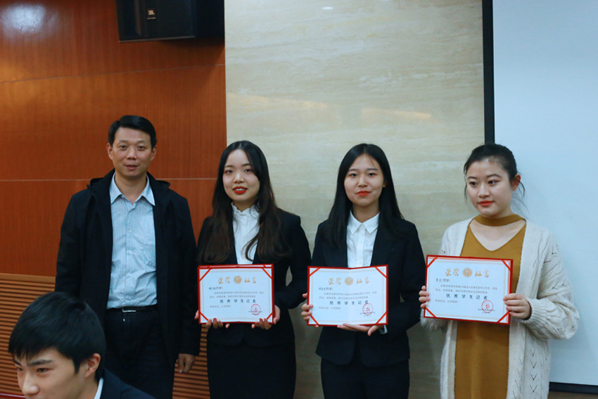 胡昌盛宣读了表彰优秀学生记者及新一届主席团成员聘任的决定,对记者团机构设置调整作了说明,要求大家按照朱书记和杨校长寄语精神,加强对大政方针、校史校情、专业知识的学习,不断提升自身综合素质,力争在学习工作中取得更大的成果,并为2018-2019学年记者团优秀宣传工作者颁发荣誉证书。郭赛赛为记者团各部新任部长黄诗怡、朱圣洁、顾晓波、周毅、周策颁发聘书。