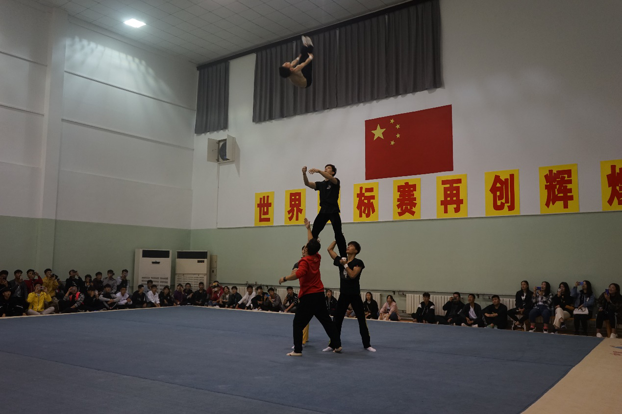 学生们观看省技巧队训练表演