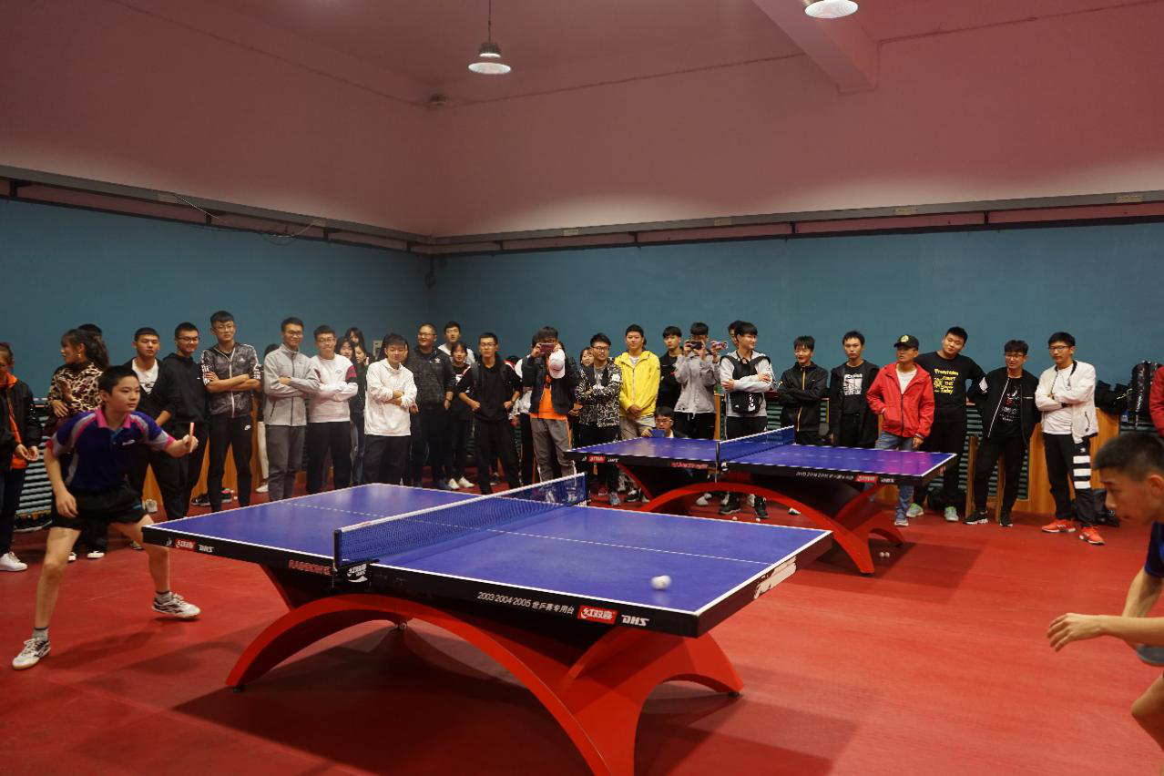 学生们观摩省乒乓球队训练