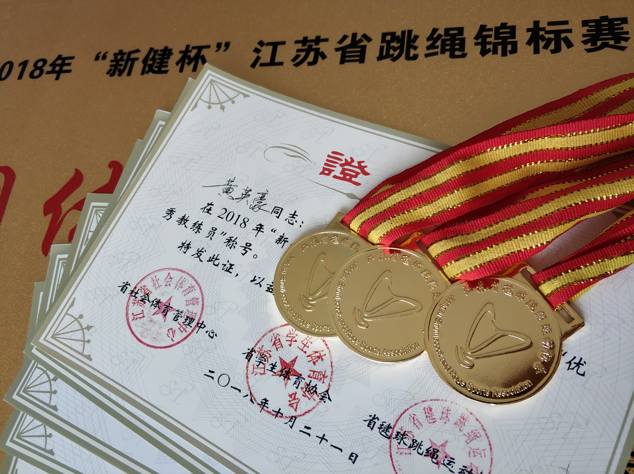 在此次比赛中,体育系花样跳绳社团代表36365最新线路检测中心出战,在体育系杨丽宁老师带领下,队长黄英豪在2018 “新健杯”江苏省跳绳锦标赛青年组3分钟单摇跳中获得冠军,在青年组30秒单摇跳中获得亚军,在青年组个人花样自选中获得季军。队员武云鹏在青年组30秒双摇跳中获得冠军,在青年组个人花样自选中获得冠军,在青年组30秒单摇跳中获得季军。
