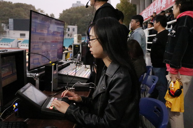 早上八点,参与实习的师生便来到五台山体育馆,开始准备下午的赛事转播,并与合作方一齐搭建好六座摄像机位与导播台的各项设施。下午三点比赛正式开始,比赛过程中,参与实习的学生有的拿起相机,来到赛场旁将比赛的精彩瞬间定格;有的在导播台,操控导播设备,剪录精彩集锦;还有的站在了合作方的摄像师旁,认真学习转播摄像技术。据悉,体育系新闻专业正打造以移动赛事转播作为特色,积极与江苏广播电视总台体育休闲频道、南京广电集团宁奥体育进行深度合作,不断拓展专业发展内涵,突出新闻专业的赛事转播操作能力。前几周连续参加了中国足球协会乙级联赛的赛事转播活动,接下来还将参与淮安马拉松等赛事转播活动。在学校、体育系的大力支持下,新闻专业正在全力组织添置移动新媒体赛事转播器材设备,希望通过几年的努力,新闻专业能成为全国体育赛事转播人才培养的摇篮。