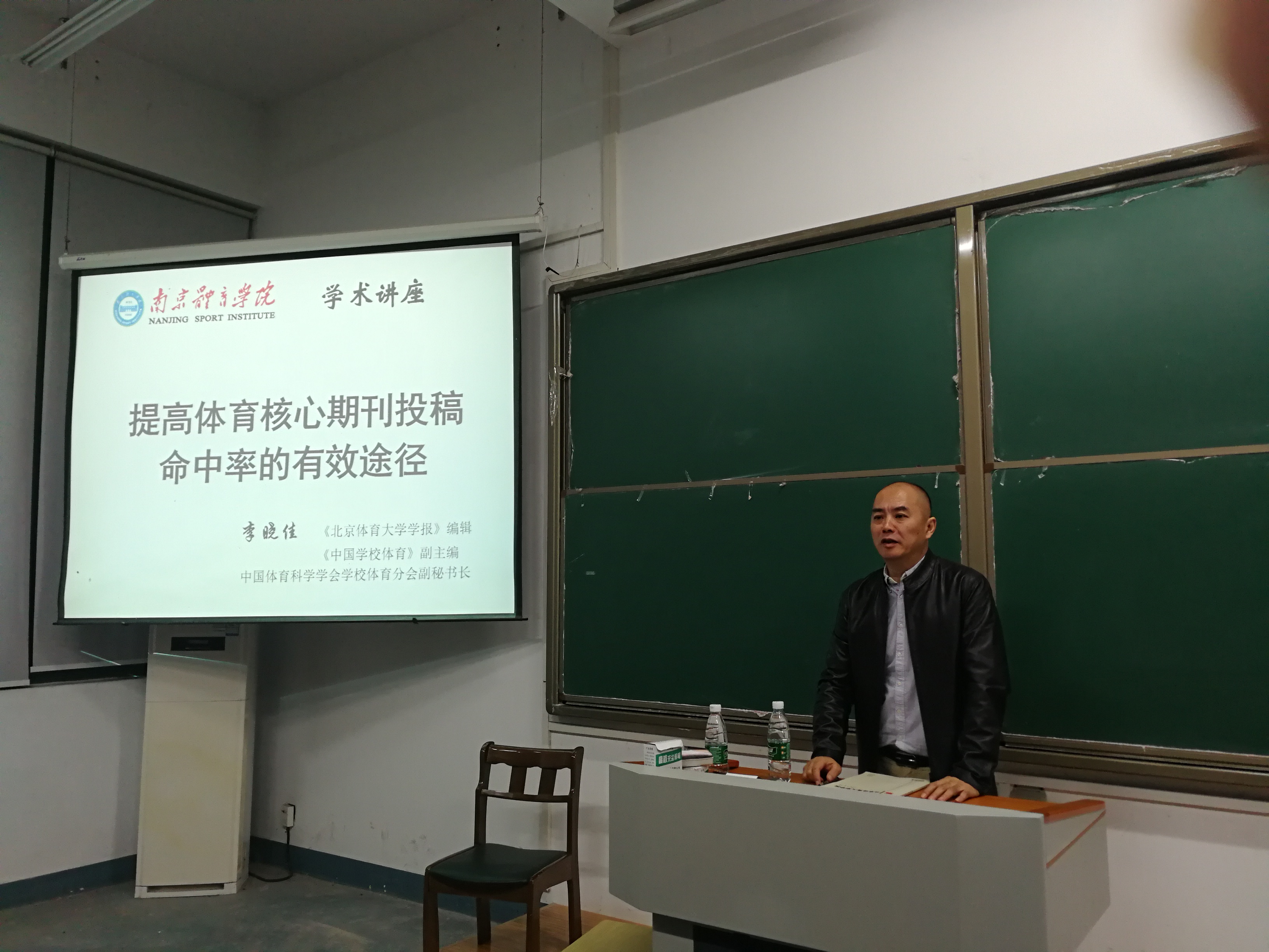 11月1日晚6:30,《北京体育大学学报》资深编辑、《中国学校体育》副主编、中国体育科学学会学校体育分会副秘书长李晓佳老师应足球学院邀请,来校举办《提高体育核心期刊投稿命中率的有效途径》的学术讲座。