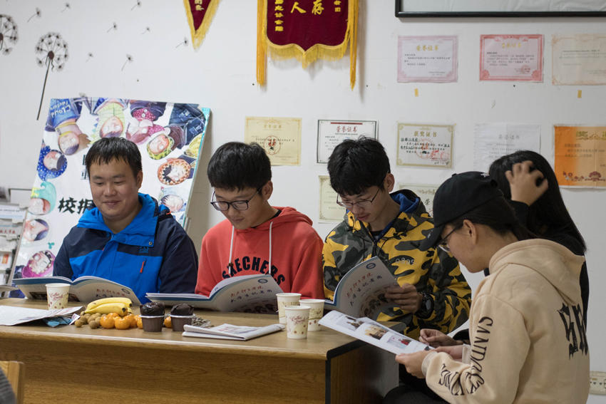 南京中医药大学记者团成员阅36365记者团宣传画册