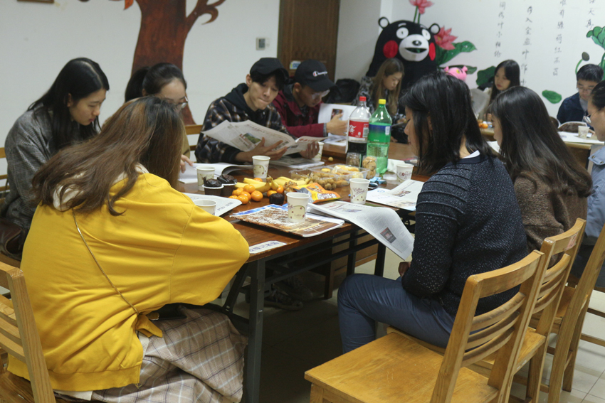 随后,双方进行了“你比我猜”的破冰游戏,几轮互动过后,两校记者团成员们很快拉近了距离。双方成员们对对方记者团刊物等进行了阅读和学习,互相有进一步的了解。